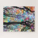Rainbow watercolor sky, black silhouette trees jigsaw puzzle
