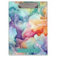 Rainbow Clipboard with Watercolor Splash Art in shades of red, pink, purple, orange and blue. This abstract watercolor clipboard features a customizable name template.