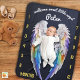 Angels wings with some rainbow color feathers on navy blue celestial blackground sprinkles with soft flowy font to edit your baby's name- unisex growth tracker for a little baby boy or girl for photographs to remember how small they once were. The design features white wings. This is perfect as a gift or just to buy yourself for your little one! They grow up too fast, savor those moments with photos remembering how small they once were! Edit the text / font easily. Your little angel will look great on this photoshoot prop.