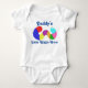 I love this onesie, it's adorable! The material is amazing so soft and the color is a perfect sky blue. When my daughter-in asked me to help with her Baby Shower, I was thrilled. It was co-ed & the theme was Cookie Monster. I had no idea that the whole world was after that big blue Monster. Thank goodness for Zazzle, I got most of the party supplies here. Then I found this onesie! They made my customization so easy. The colors are awesome. I wrote the word "Loved" across the bottom of the Cookie Monster in red letters when I was putting it together. I saw the preview & liked it. But to see it in person, OH, it was fantastic, they do exceptional work! I am so glad that I found this onesie/bodysuit. The production time and shipping were exactly what I was told, which made it easy to plan the party. Packaging was nice as well. If you are looking at this product, look no further, I highly recommend it! I'm certain that I'll be back to "design" whatever my new Grandson "needs.". The printing on the onesie/bodysuit is crisp, and clean. With perfect colors that blend well with the blue background of the basic material. We are so happy with how it came out.