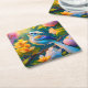 Rainbow Winged Jay Fantasy Bird Square Paper Coaster