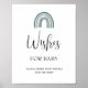 This charming baby shower sign features a delightful rainbow theme in soft hues, perfect for celebrating your little miracle. The design includes playful rainbow graphics with light blue accents, paired with modern and elegant typography. The phrase “Wishes for Baby” is prominently displayed, making it easy for guests to know where to leave their cards with written wishes. This sign adds a cheerful and welcoming touch to your baby shower décor, blending seamlessly with rainbow or baby boy-themed celebrations.