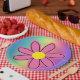 Here's a fabulous bright rainbow gradient with a colorful pink and yellow flower for your party, wedding, or event!