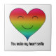 A rainbow smiling heart and the romantic text "You make my heart smile" - this is a design about true love and happiness. Click the "Customize It" button to choose your favorite background color.