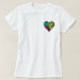 A simple white T-Shirt with a colorful zebra print heart in the top left hand corner.