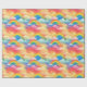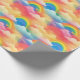 Bright and colorful patterns feature rainbows arching over fluffy clouds against a vibrant sky. The repeated motif creates a whimsical and cheerful backdrop.