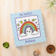 Adorable binder featuring a cute, whimsical, cartoon, colorful rainbow radiating from two fluffy white clouds. Surrounded by stars, hearts, dots and the yellow sun.. Above and below the image on the front of the binder are templates to add your text to personalize, also down the spine of the binder. If you wish to remove any of the text just delete the text in the text boxes to leave blank. The background of the binder is a light blue with white polka dots.