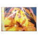 The original abstract artwork by HomeWare on this Cloth Placemat was created from an original closeup photograph of raindrops on a coral palm plant. The photo design is in sunny tropical colors, bright yellow, pink, orange, terracotta, blue and white.