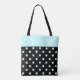 Raindrops Blue Polka Dots on Black Monogram Tote Bag