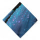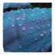 The abstract blue artwork on this Bandana is an original closeup photograph by ZoeSPEAK of raindrops on a Manilla palm frond. The blue frond is curved, giving us views of the spacey blue water droplets from different angles. At the top of the curve we see a horizon of raindrops against the dark background. As the frond curves around, the droplets have bright highlights, and become smaller toward the underside in shadow.