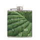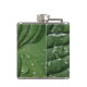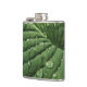 A closeup of a green hosta leaf is featured on this botanical fine art photography flask. The veins create a circular spiral abstract pattern. Recent rain has deposited water droplets and the raindrops reflect the light. This plant is also known as funkia, plantain lily or giboshi (in Japan). A great idea for gardeners or nature lovers.