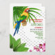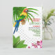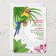 A tropical-theme invitation with exotic foliage and orchids and a colorful parrot perched on a branch. (<a href='https://www.freepik.com/free-vector/special-offer-summer-sale-lettering-colorful-tropical-background-with-parrot-and-orchid_2541759.htm'>Designed by Katemangostar</a>). <br/><br/>The card is easy to customize with your wording, font and font color.<br/><br/>Not exactly what you're looking for? All our products can be custom designed to meet your needs at no extra charge.<br/><br/>Simply contact us at askcottonlamb@gmail.com.<br/><br/>Coordinating products available: Just ask us!