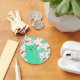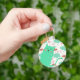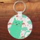 Raining Cats key chain with rain, umbrellas, polka dotted teal clouds, umbrellas, and a teal smiling cat!