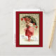 This vintage Valentine features a little girl under an umbrella because it is raining golden hearts. Hanging from her green umbrella are large red hearts. The text on the card says “With fondest Love to my Valentine”.