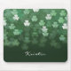 Celebrate Irish heritage (even if you're not Irish!). A shower of shamrocks rains down on a customized holiday message against deep forest green on this mouspad. Customize with a name or any other message. Available with matching products.