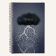 A whimsical dark thunder cloud spews rain and lightning illuminating a pool of rippling water. Customize the cloud with a name or title for your notebook.