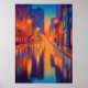 Rainy City Street Pointillism Lights Poster