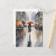 Rainy city watercolor art postcard