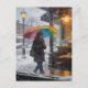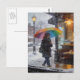 Rainy Day Abstract Woman With Umbrella Window Postcard