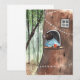 My children's book woodland illustration, featuring brown bear, daydreaming under the lullaby rain drops with a warm cup of herb tea. His tree home is decorated with fairy lights, because bear really likes holidays and festive moments. Magical forest scene on a rainy day. Cute bear in sweater watercolor and gouache illustration. Magical bear sweater weather illustration card. Bear children illustration card, whimsical bear woodland fairytale card, bear woodland nursery card.