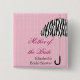 Identify your wedding party easily with this bridal shower button for a bride who is a little more bold than others. A zebra patterned umbrella protects the customized text against the rainy pink background. Just add the role or relationship to the bride in the placeholder area. Available in alternate colors with matching products.