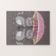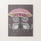Piece together this adorable puzzle featuring two cute gray cats sharing a pink polka-dot umbrella on a rainy day. Their sweet smiles and matching bow ties make this a heartwarming scene perfect for cat lovers and puzzle fans alike!