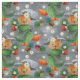 An orange kitty in a green raincoat and hat carries a potted bloom as white daisies dance across a soft grey, rain-streaked sky. Texture and gentle shading give the repeat a vintage storybook feel with cottage-garden charm. Palette: moss green, slate grey, tangerine, cream. Where available, adjust scale or repeat to suit quilts, bows, or décor.