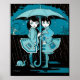 Two little girls dressed in blue under an umbrella on a rainy day…with a blue snail. Drawing by Italian cartoonist Antonio Rubino for the cover of the children’s magazine, “Il giornalino della Domenica”,1908.