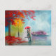 RAINY DAY RED UMBRELLA ROMANTIC COUPLE POSTCARD