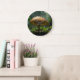 Rainy Day Refuge: Frogs Sheltering Under Mushroom Large Clock