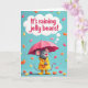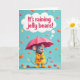 This design shows a cute, human-like grey rodent with round ears and a rosy nose standing under a fuchsia umbrella, dressed in a canary-yellow raincoat and matching boots. The sky-blue background keeps the scene light, and the character’s upward gaze feels like they’re sharing a small, private moment with someone just out of frame 🐰. Near the top, a white cloud-shaped label holds the main text in a simple dark font, positioned like a headline above the umbrella. Below it, glossy bean-shaped candies “rain” down in red, orange, pink, yellow, and green, adding a sweet, flirty energy to the space 🐇. A few candies float midair while others sit on the calm blue ground, giving the layout gentle motion without looking busy. Soft, even lighting adds smooth highlights to the umbrella, coat, and candies, like a cozy scene meant for two friends walking together. The rodent’s long, curling deep-pink tail arcs to the side, and the candies scatter around its boots on the blue surface.