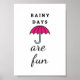 Rainy Days are Fun typographical design with a pink umbrella. Celebrate the rain - the flowers need it!