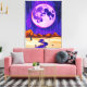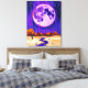 This surreal landscape wall art captures the beauty of a glowing full moon against a purple night sky with gentle rain falling over vast desert hills. A winding river flows through the scene, adding a reflective shimmer to the dreamlike composition. The mix of deep purples, soft blues, and earthy tones creates a mysterious yet calming atmosphere, making this piece a striking focal point for living rooms, bedrooms, or creative spaces.