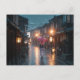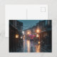 Experience the quiet beauty of Japan's rainy season with this atmospheric postcard. Featuring a stunning depiction of Kyoto’s Gion district under heavy rain, traditional wooden buildings shimmer in reflections, and a lone woman with a red umbrella walks through the peaceful storm. Perfect for seasonal greetings, travel lovers, or collectors of Japanese art and scenery.