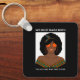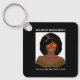 This stylish keychain celebrates feminist values and the empowerment of women. The eye-catching retro design, set against a black background, features a brown-skinned woman with an Afro hairstyle, orange earrings, and sunglasses. Her presence in ethnic attire symbolizes confidence and a strong commitment to women's rights. Framed by the powerful quote "We must raise both the ceiling and the floor," the design is emphasized both above and below, calling for support of equality and rights.