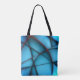 Raised blue shapeless cutouts with red ember cleft tote bag