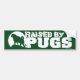 This popularly funny bumper sticker lets em know where your bug eyed, hanging tongue, wagging tail, snorting, and spiinning while being all cute and cuddly, came from! You can't help it - you were RAISED BY PUGS! (Also available in purple, red, blue, black, or pink!)