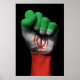 This powerful design by artist Jeff Bartels features the flag of Iran painted on to a clenched fist. The hand is raised which gives the appearance of strength, power, solidarity and resilience. The fist is beautifully detailed and sits in front of a background that can be customized to any color you like. This stylish raised fist design is a great way to show off your Iranian pride and patriotism.