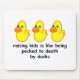 My mom always said that being raised by us kids was like being pecked to death by ducks. I looked around and I see other people says its by chickens, but, my mom said ducks.
