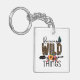 Raising Wild things. Key chain for mom. Design has leopard print, arrows, butterflies, and flowers in it.