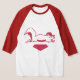 I bought the Men's Basic 3/4 Sleeve Raglan T-Shirt, White/Navy. It arrived on time for a gift and is of a great quality and fits perfectly! So cute! Zazzle has done it again! The printing was clear and filled in solidly.
