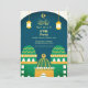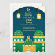 This modern elegant Ramadan Iftar party invitation features golden Arabic "Labbaik ya Rasool "calligraphy and islamic golden pattern, cute hand drawn colorful mosques, islamic lanterns and gold crescent with star on teal green and white background. You can easily change the background color, text, fonts,colors or remove by clicking Zazzle's customisation tools.