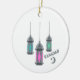 Lightweight, smooth, pure white ornament with nice sheen. Perfect size to be seen from across the room ... and to attract closer inspection! Price was great for ordering enough for the whole family! Clear, bold black design just as requested. Matches the order exactly. Just so nice!
