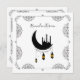 Silhouette for Ramadan with a mosque on a crescent moon and hanging lanterns. Floral border. Background color may be changed.