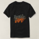 My 11 yo wore adult XL (5’7” 165#). The 8yo is small framed. She wore adult small and tied it in the back. Grandma wore adult large with long sleeve shirt underneath. Tall girl adult medium. Dark haired male adult large. Good quality dark Heather gray, Gildan brand shirt. -it was next up from basic choice and cost about $20 per shirt. Not too thick or thin. Washed and dried well, no major shrinkage. Not see-through. Can wear a bra under it fine. Screen print is just as shown and well done, front and back.