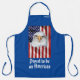 Rampant head of a bald eagle over the American flag. A patriotic customizable all-over printed apron. You can change the image and you can change or delete two texts independently. If you need to change the color of the background, the location of the image, the font, etc., please, use the "Edit design" button or the "Click to customize further" option. Do not forget to choose the size of the apron and the color of the strap. Just customize and buy one, have fun, and be happy!