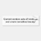 Bumper sticker with the statement "Commit random acts of kindness and create senseless beauty!"