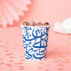 This eye-catching paper cup features an intricate design composed of random Arabic alphabets in a vibrant blue color, making it not only functional but also a piece of art. Ideal for coffee, tea, or any hot beverage, this cup adds a unique cultural touch to your drinking experience. The lightweight design and snug-fitting lid ensure convenience and ease of use, whether you're at home, in the office, or on the go. Perfect for those who appreciate a blend of style and practicality.