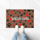 Random Cartoon Dog Paw Prints And Red Hearts Doormat