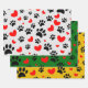 Random Cartoon Dog Paw Prints And Red Hearts Wrapping Paper Sheets